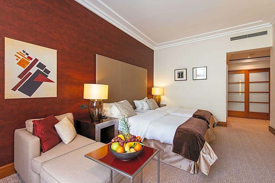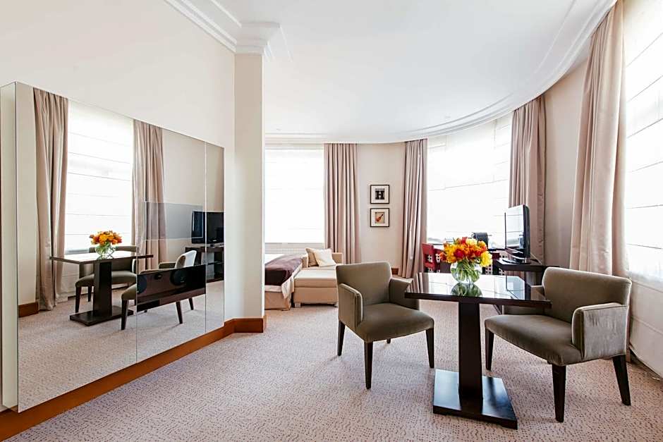 This spacious suite features a large seating area and a free-of-charge mini-bar, except for alcoholic beverages. It comes with a private bathroom with a bath and a shower. It also includes a flat-screen TV and satellite channels. There is a Nespresso coffee machine, which is refilled once per day.